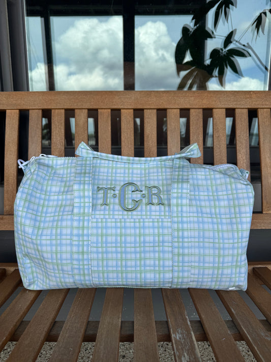 TRVL BLUE GREEN PLAID WEEKENDER DUFFEL