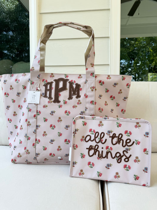 TRVL PINK WOODLAND QUILTED DIAPER BAG, CHANGING PAD AND EVERYDAY BAG SET