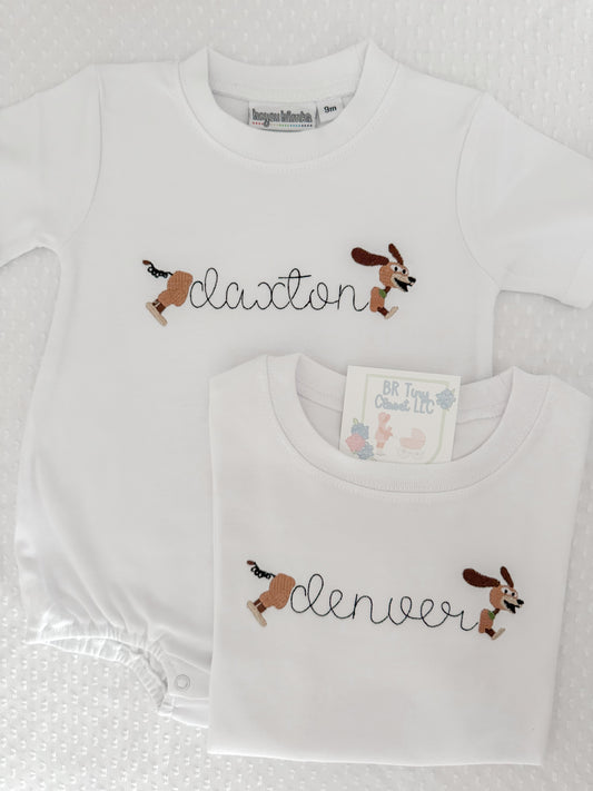 Embroidered SS Slinky Dog Tee/Bubble
