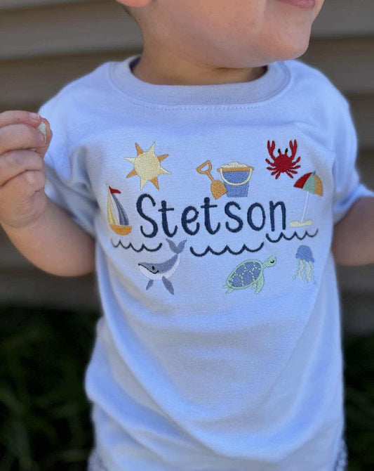Boys Embroidered SS Blue Fish Tee