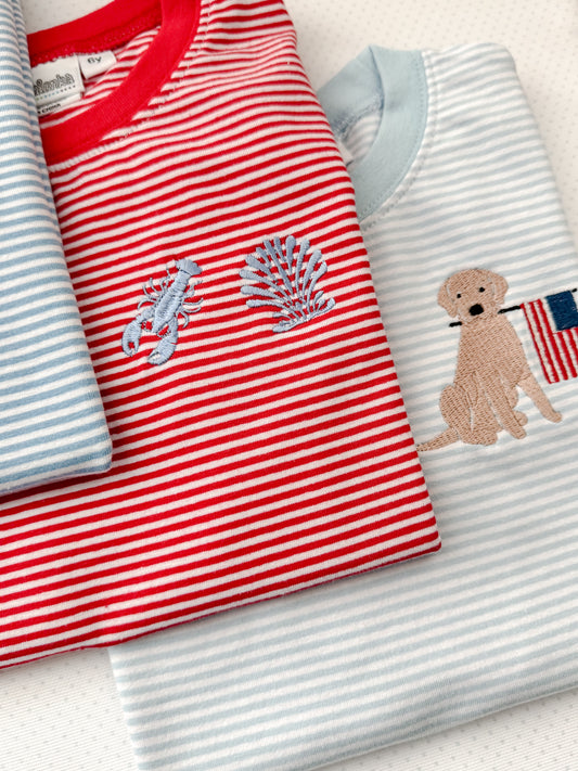 Embroidered SS Red Stripe Beach Tee/Bubble