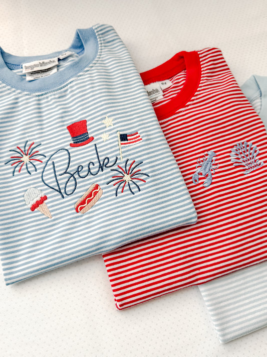 Embroidered SS Blue Stripe Patriotic Tee/Bubble