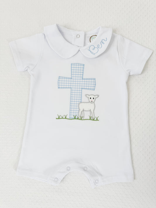 Appliqué Easter/ Cross Lamb Collared Romper