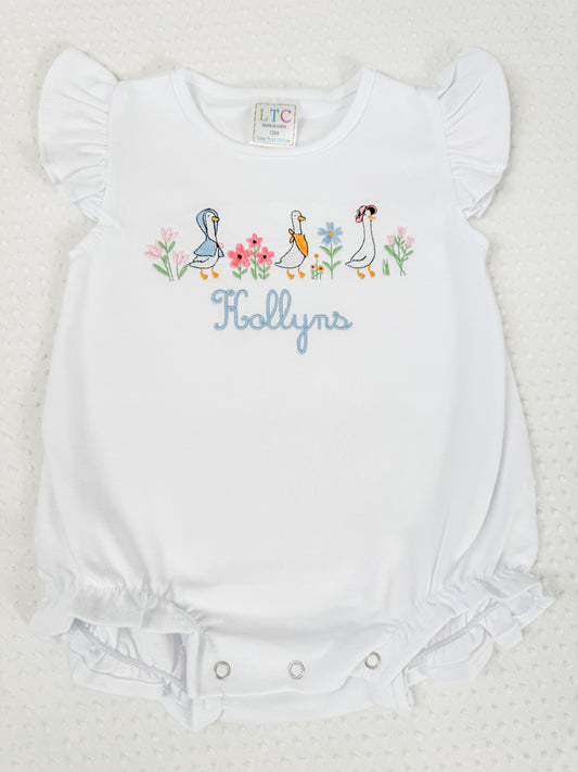 Spring Geese Embroidered Flutter Tee/Bubble