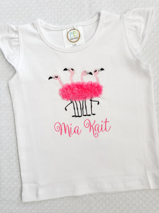 Flutter Sleeve Fluffy Flamingo Bubble/Tee