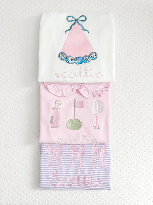 Embroidered Appliqué Birthday Hat Shirt/Bubble
