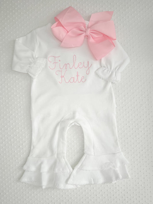 Bow Embroidered Baby Ruffle Romper