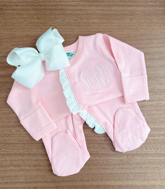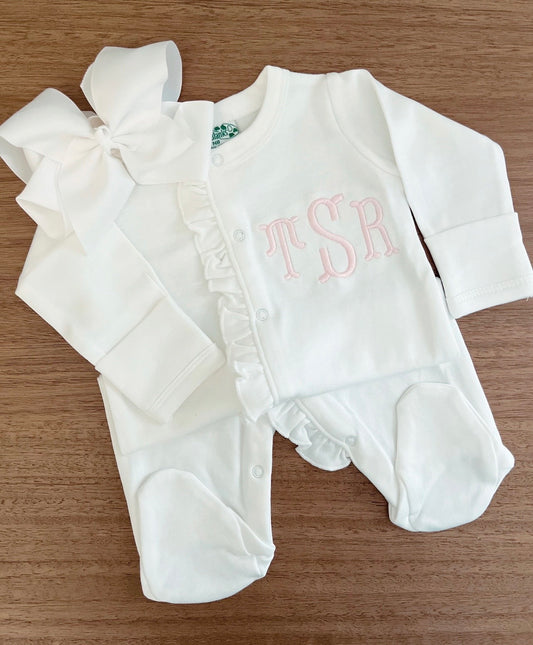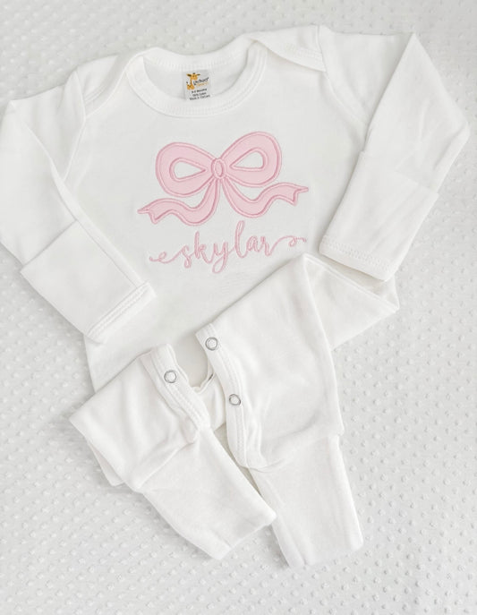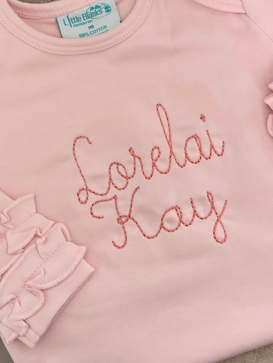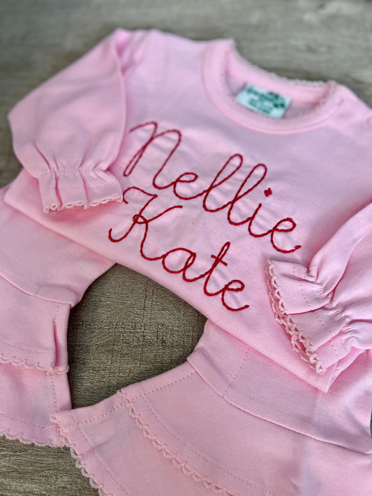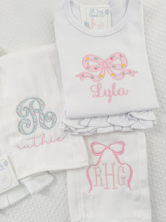Flower Bow Embroidered Tee/Baby Ruffle Romper