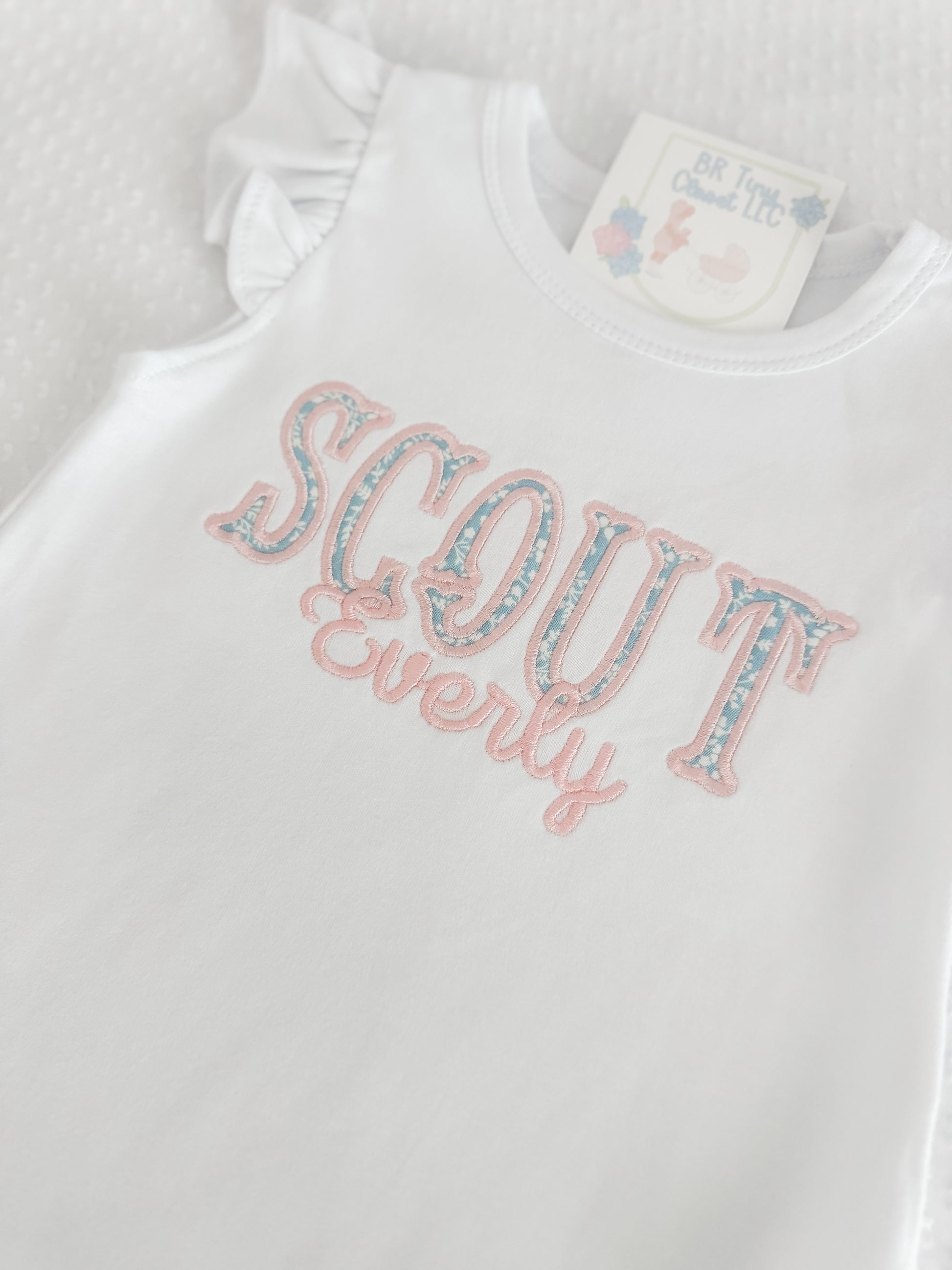 Don't see your size? Feel free to send me a message! Always double check the personalization box to make sure that the name or initials are correct before submitting your order. No returns or exchanges.