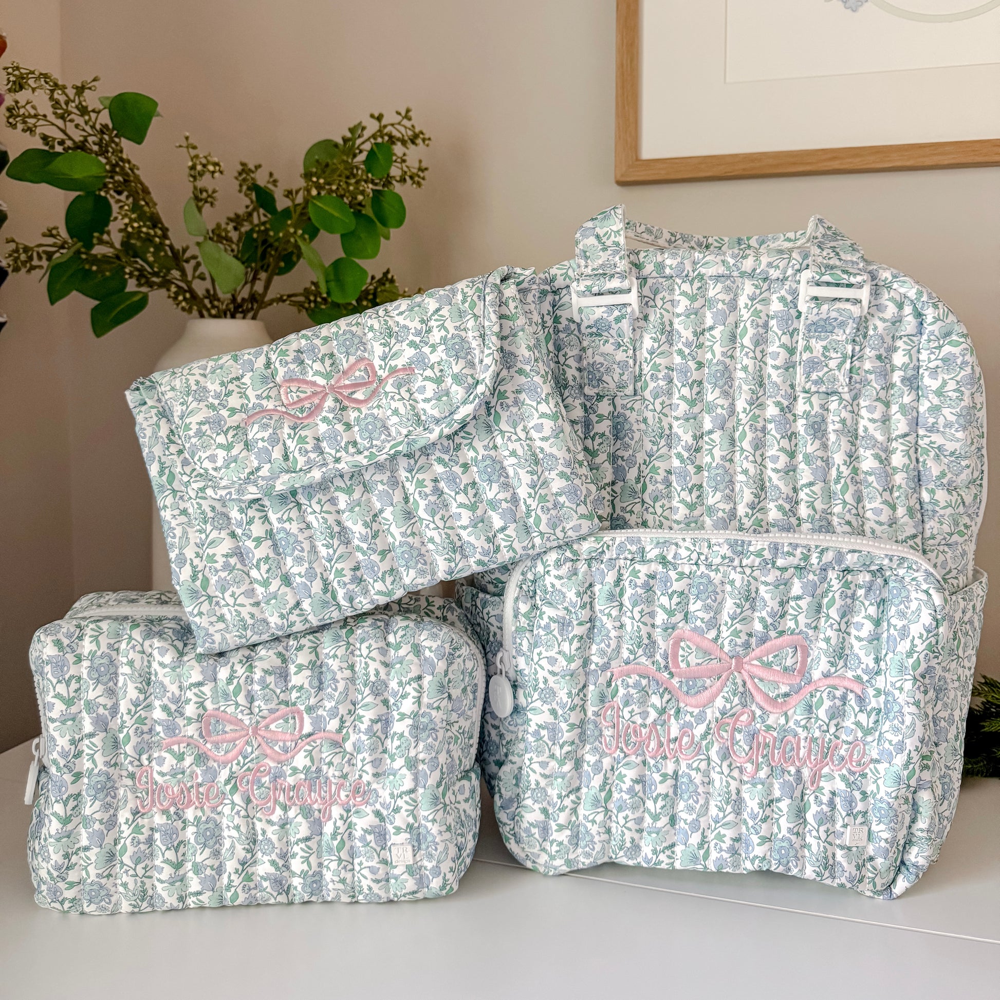TRVL HAMPTON FLORAL QUILTED DIAPER BAG, CHANGING PAD AND EVERYDAY BAG SET