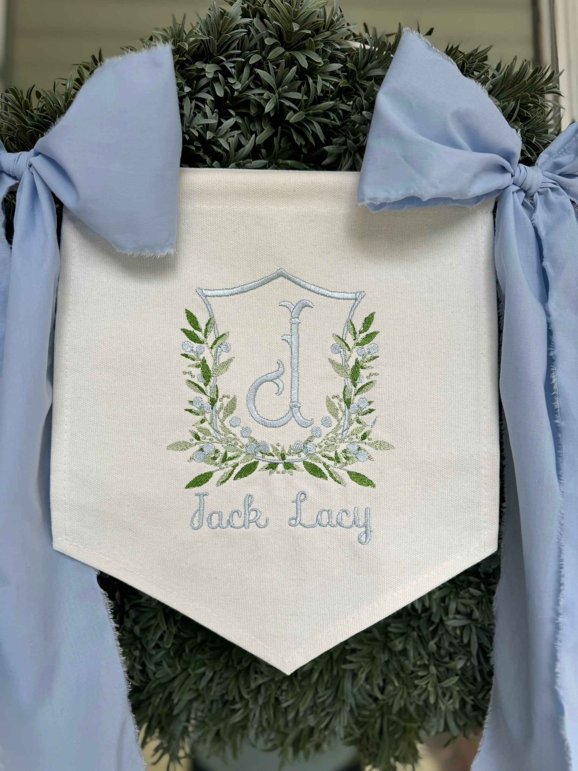Embroidered Boys Greenery Banner