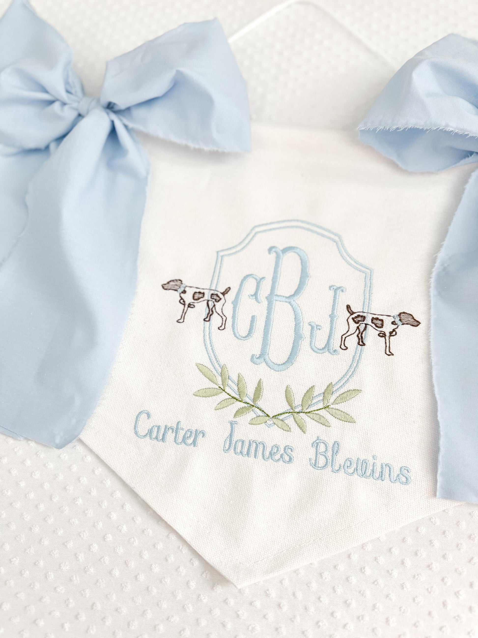 Canvas banners are approximately 10.6”x12.2” with a 11.6” stick. Ribbon bows are handmade with no two identical. Always double check the personalization box to make sure that the name or initials are correct before submitting your order. No returns or exchanges.