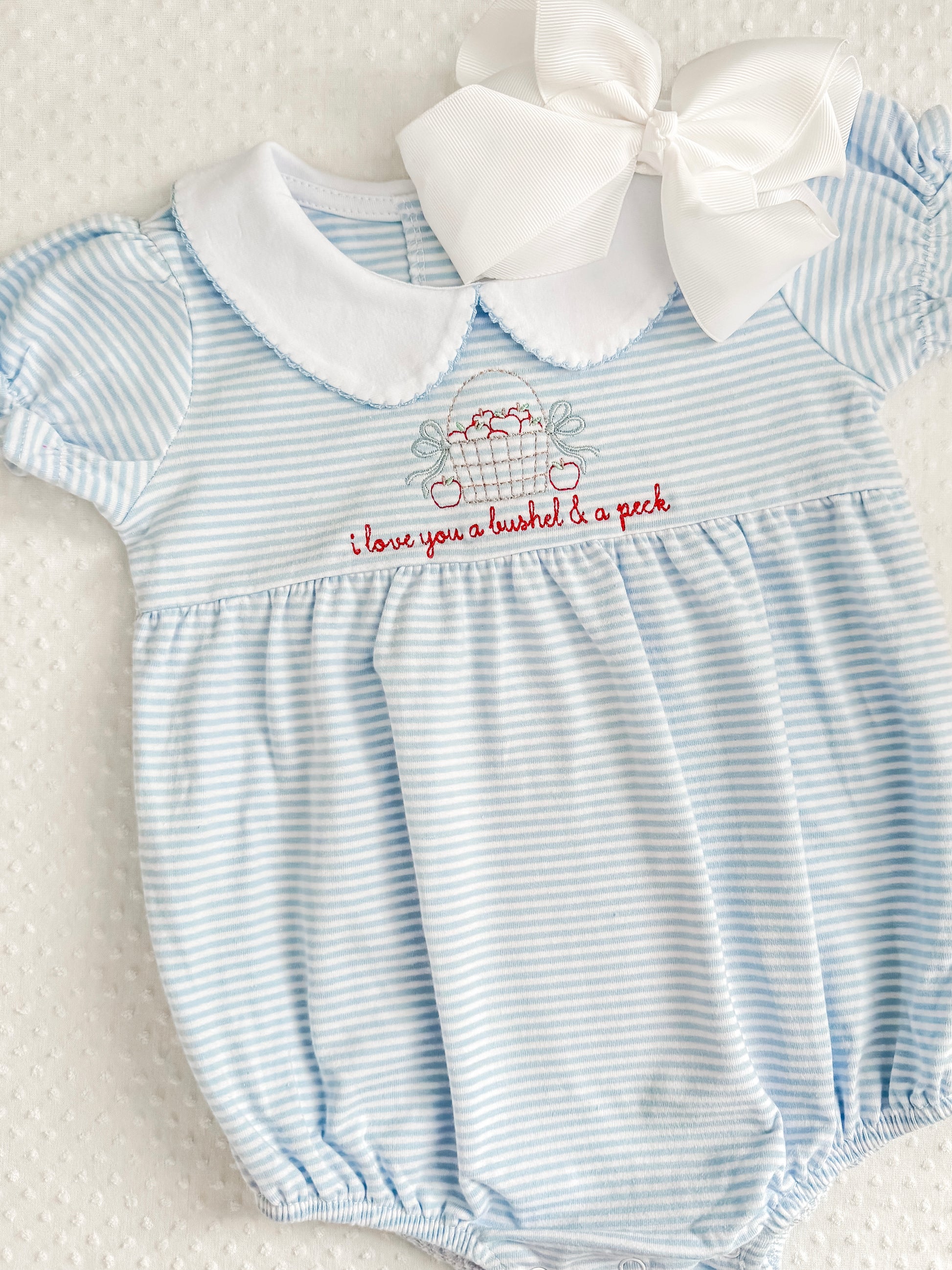 Embroidered SS Blue Stripe Bubble, I love you a bushel & a peck