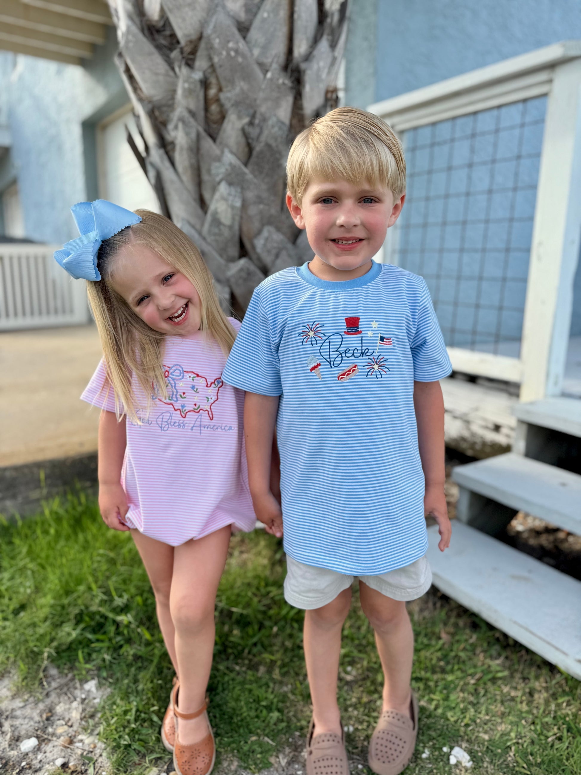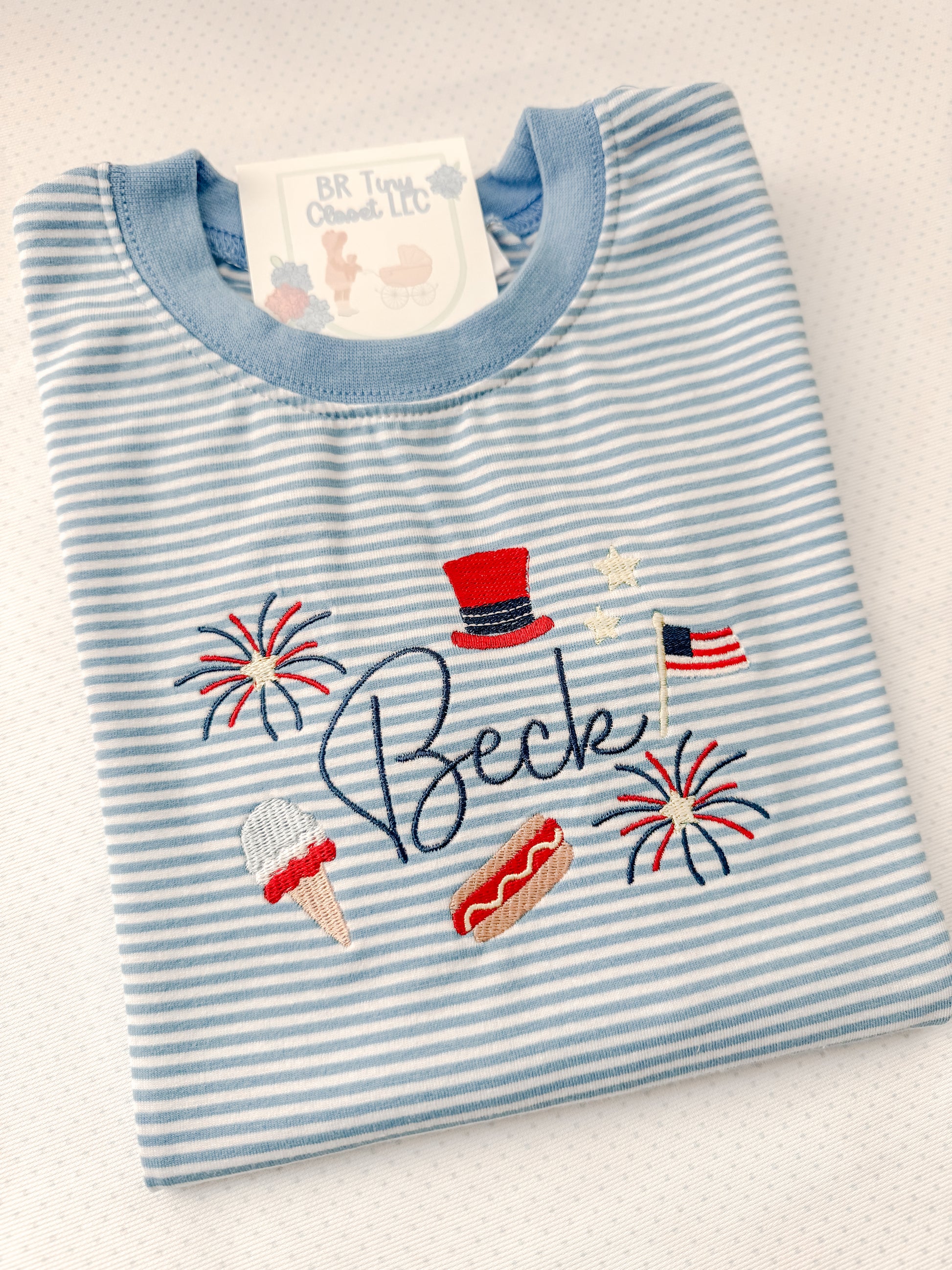 Embroidered SS Blue Stripe Patriotic Tee/Bubble
