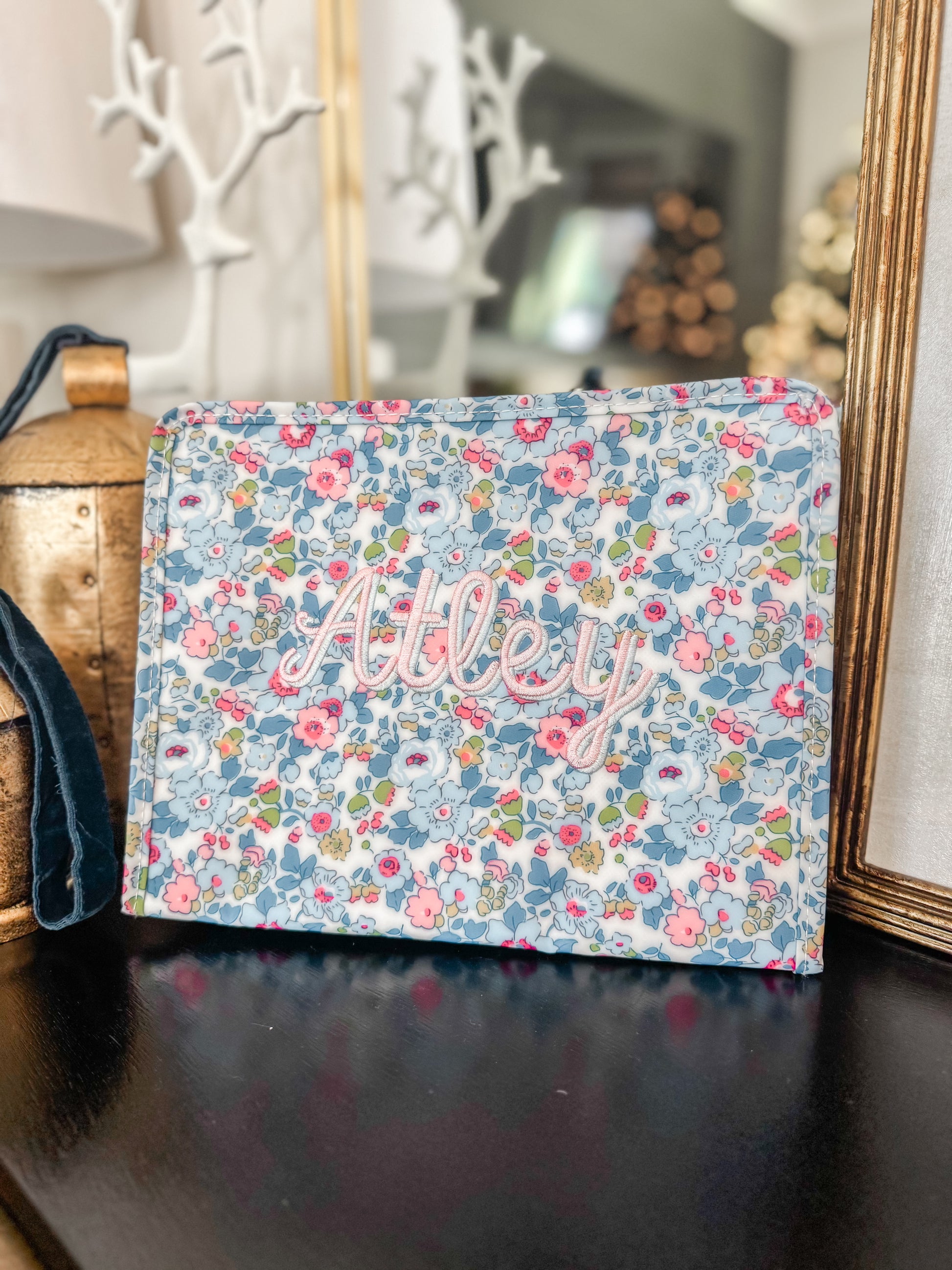 Our best-selling Roadies are our BFFs in the pouch world! Available in 2 sizes, our Roadie is made in a cotton gingham with a thin Eco-friendly matte coating, an inside slip pocket and exterior snap open zip tabs for a wider opening and an easier access.