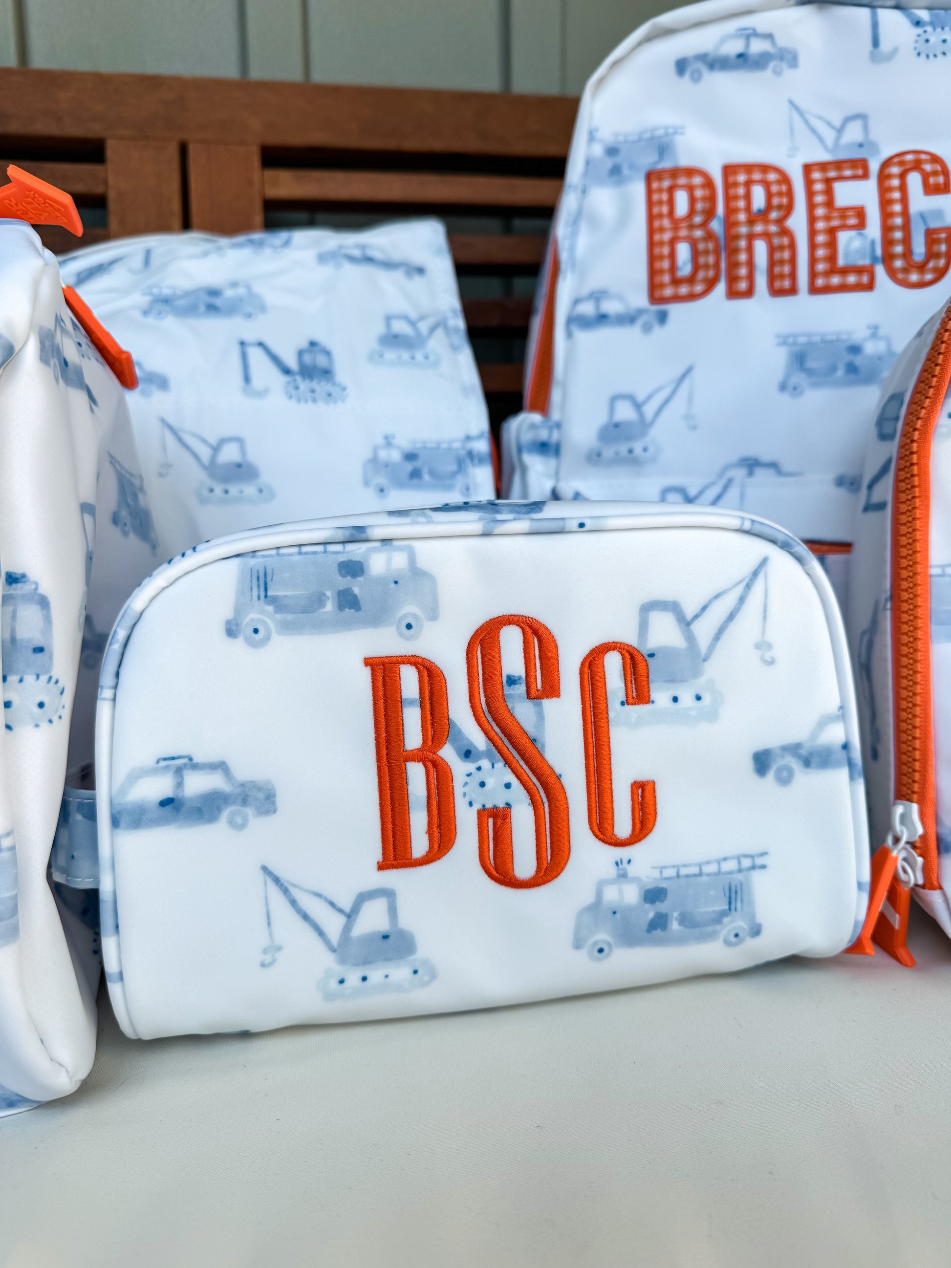 Simplify your packing routine and stay tidy with our smaller dopp kit Stow It. This soft sided bag with a carry handle is a mid size toiletry bag for toiletries, make-up, hair care – anything to have within arm’s reach while getting ready for your day. Comes with a slip interior pocket and is wipeable and machine washable.