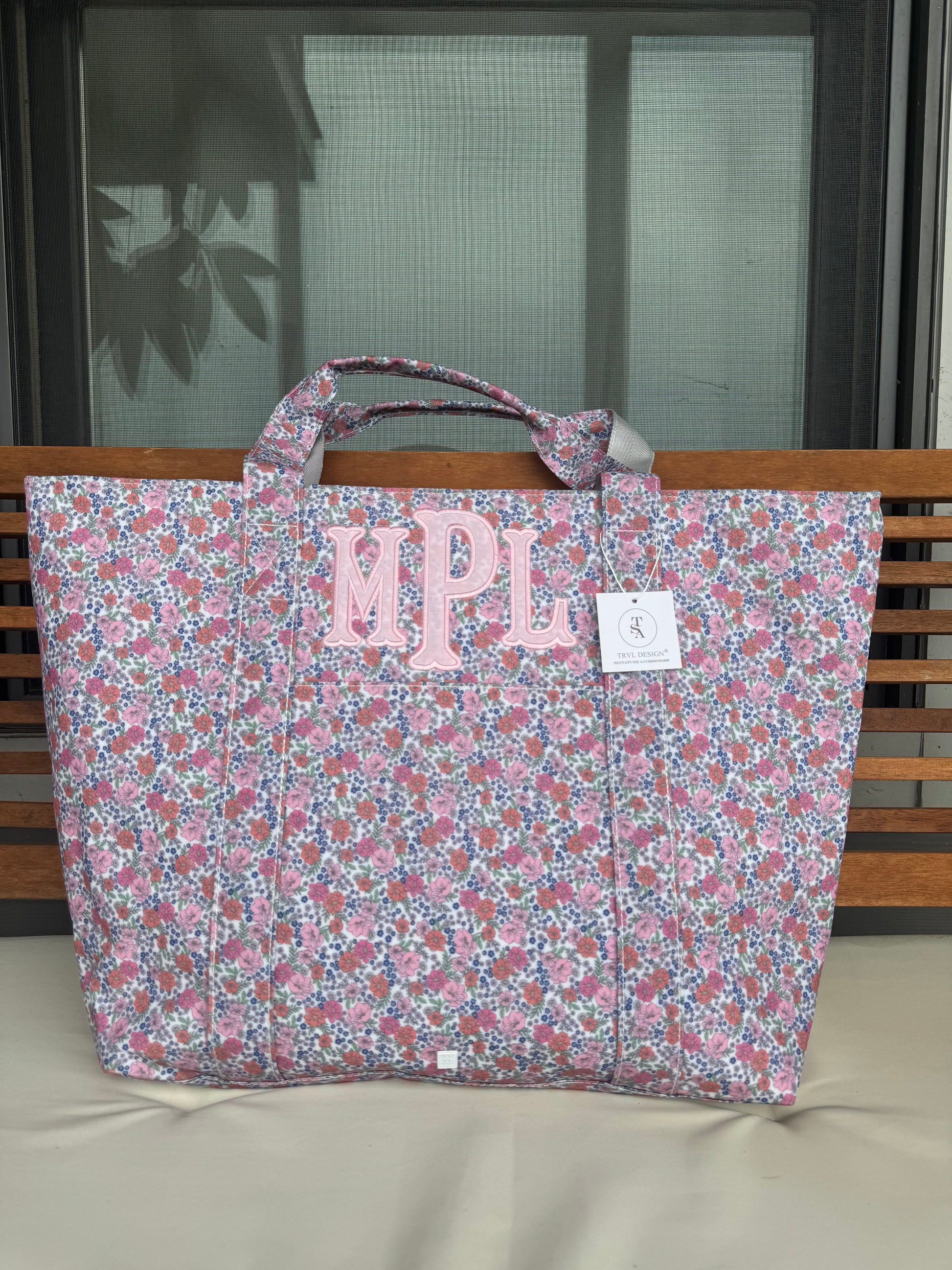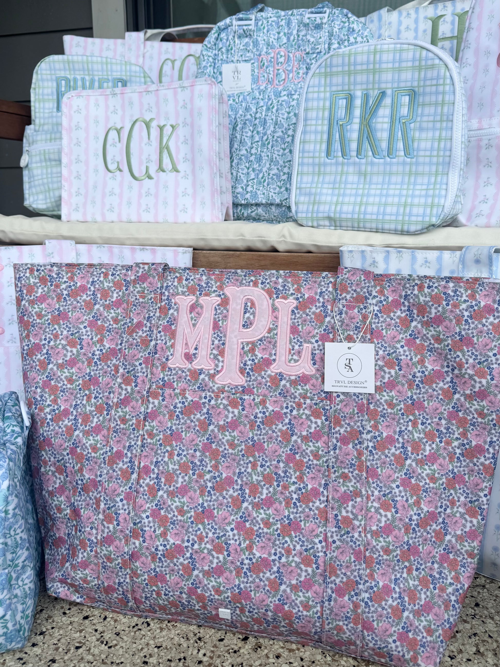 Get around effortlessly with our Jumbo Tote. This do-it-all lightweight tote is useful year-round for all occasions - as a beach bag or for your everyday needs. Underneath the strap is satin webbing designed to prevent from slipping, an interior full slip pocket and zip pocket, a front exterior pocket, and an exterior trolley passthrough.