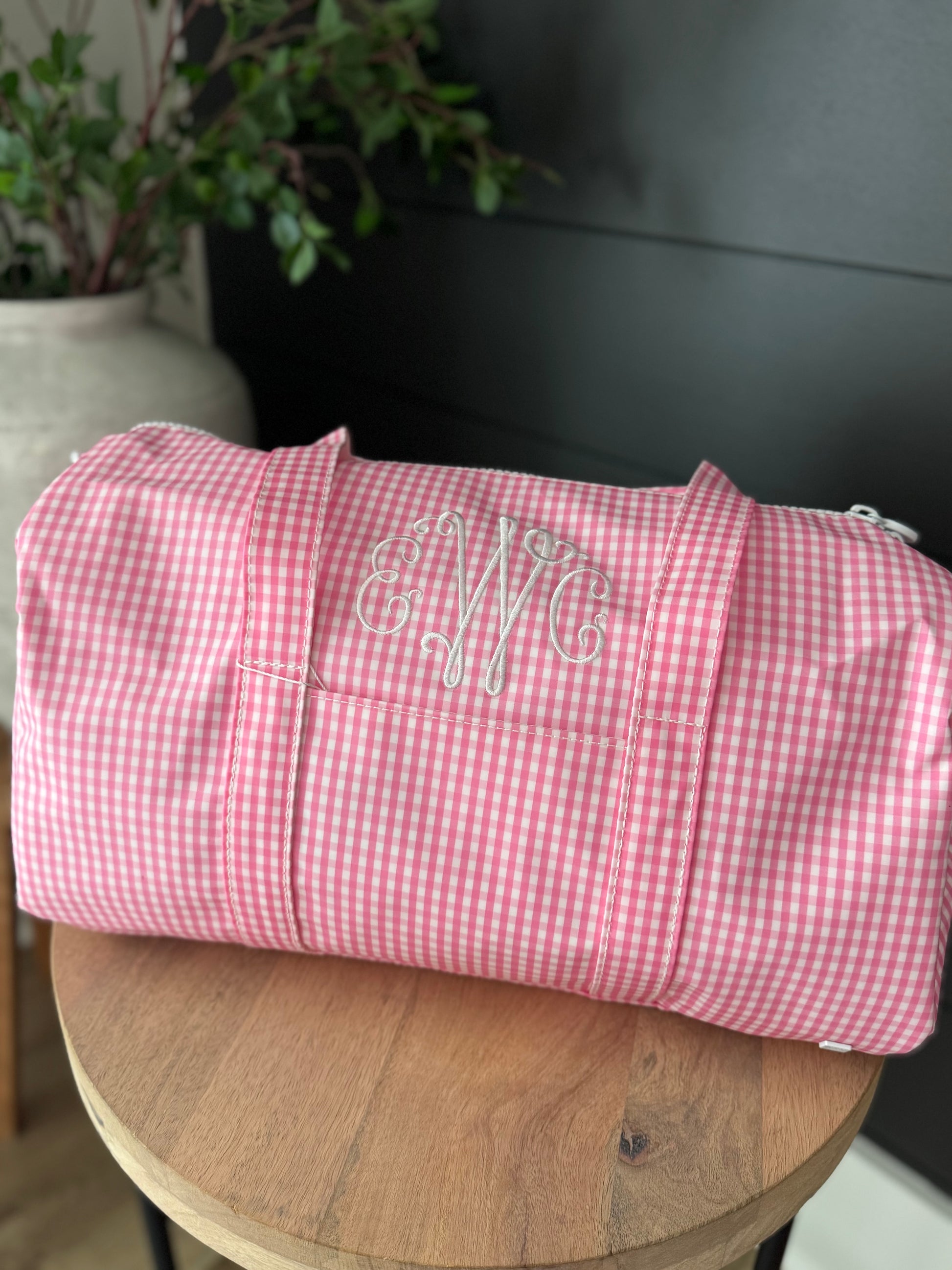 TRVL PINK GINGHAM WEEKENDER DUFFEL