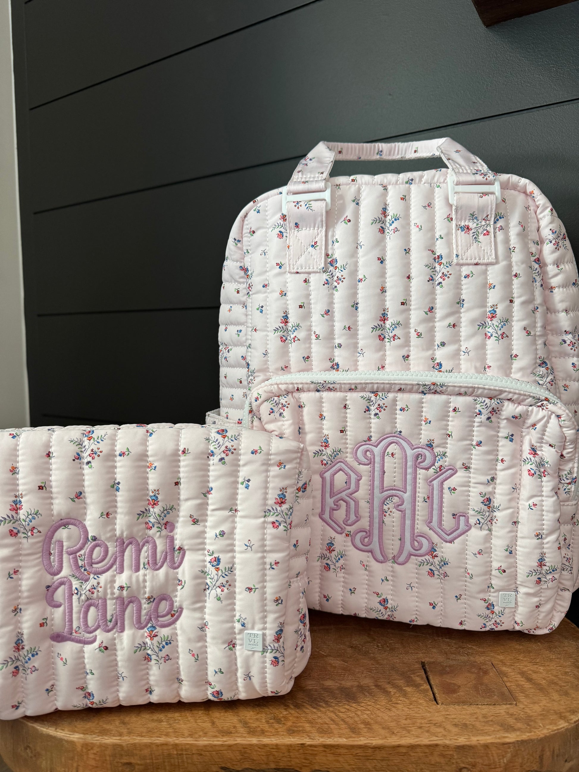TRVL PINK FLEURIE QUILTED DIAPER BAG, CHANGING PAD AND EVERYDAY BAG SET